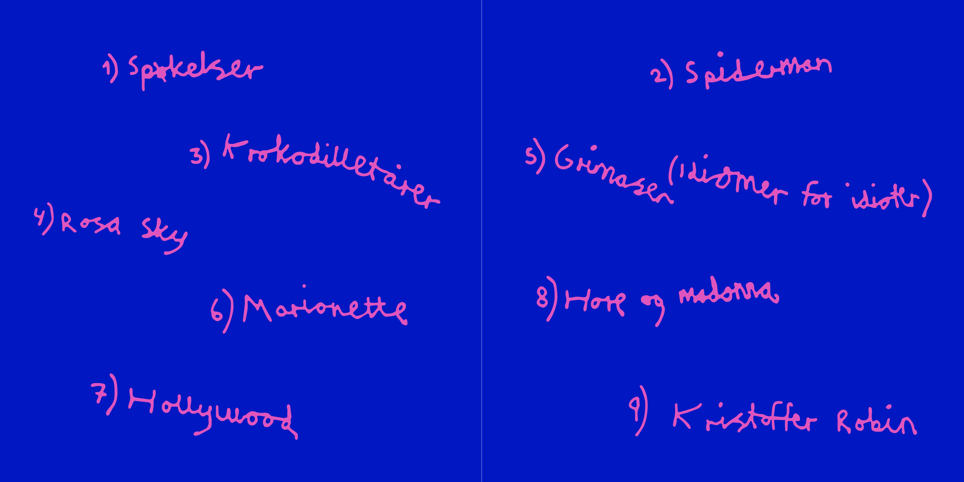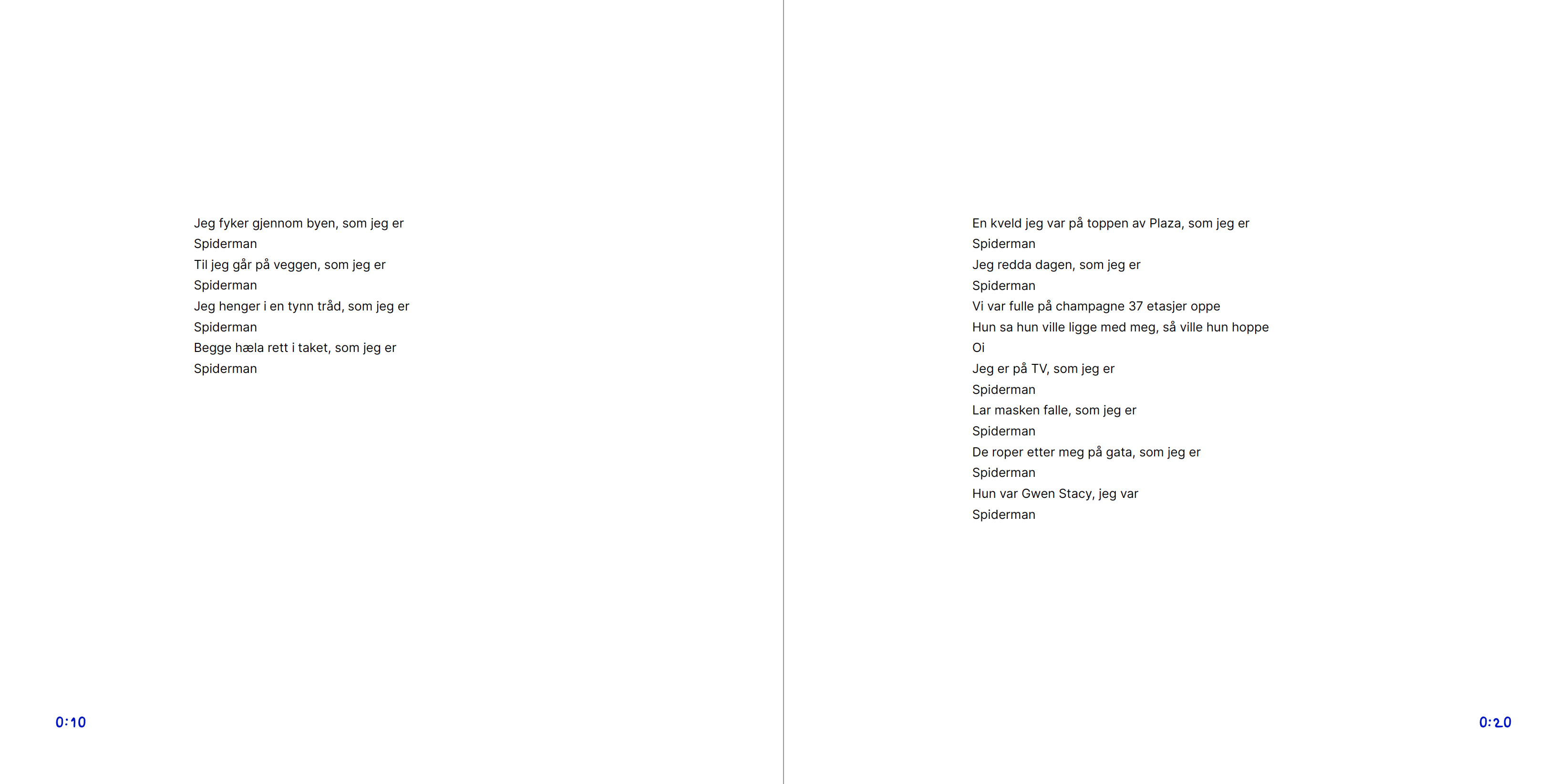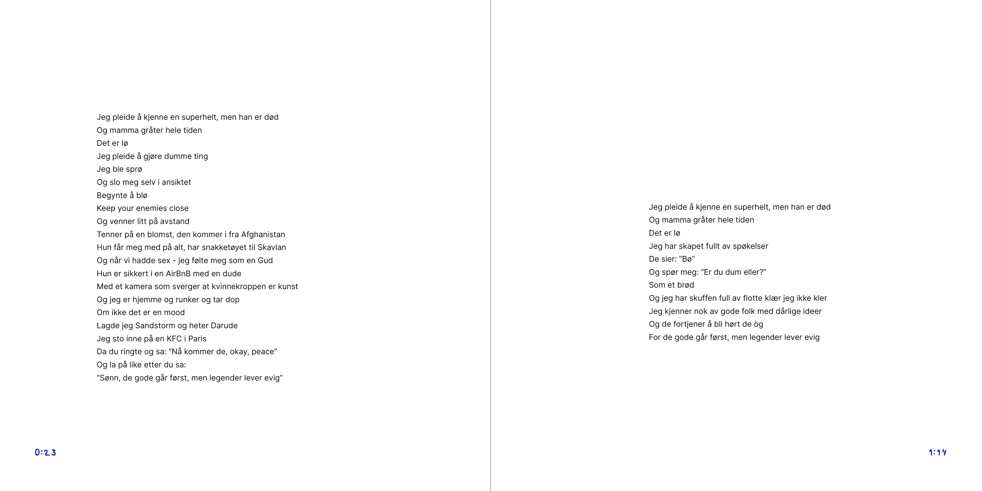 This book covers Cezinando's award-winning album from 2022: Et godt stup i et grunt vann. The book gathers all nine songs in one place, allowing the reader to easily delve into the lyrics, either with or without music. I chose to build on the already existing visual identity, by preserving the use of color and typography. At the same time, I had to reproduce all graphics as vector graphics, in order to create a holistic expression that matches the music album.